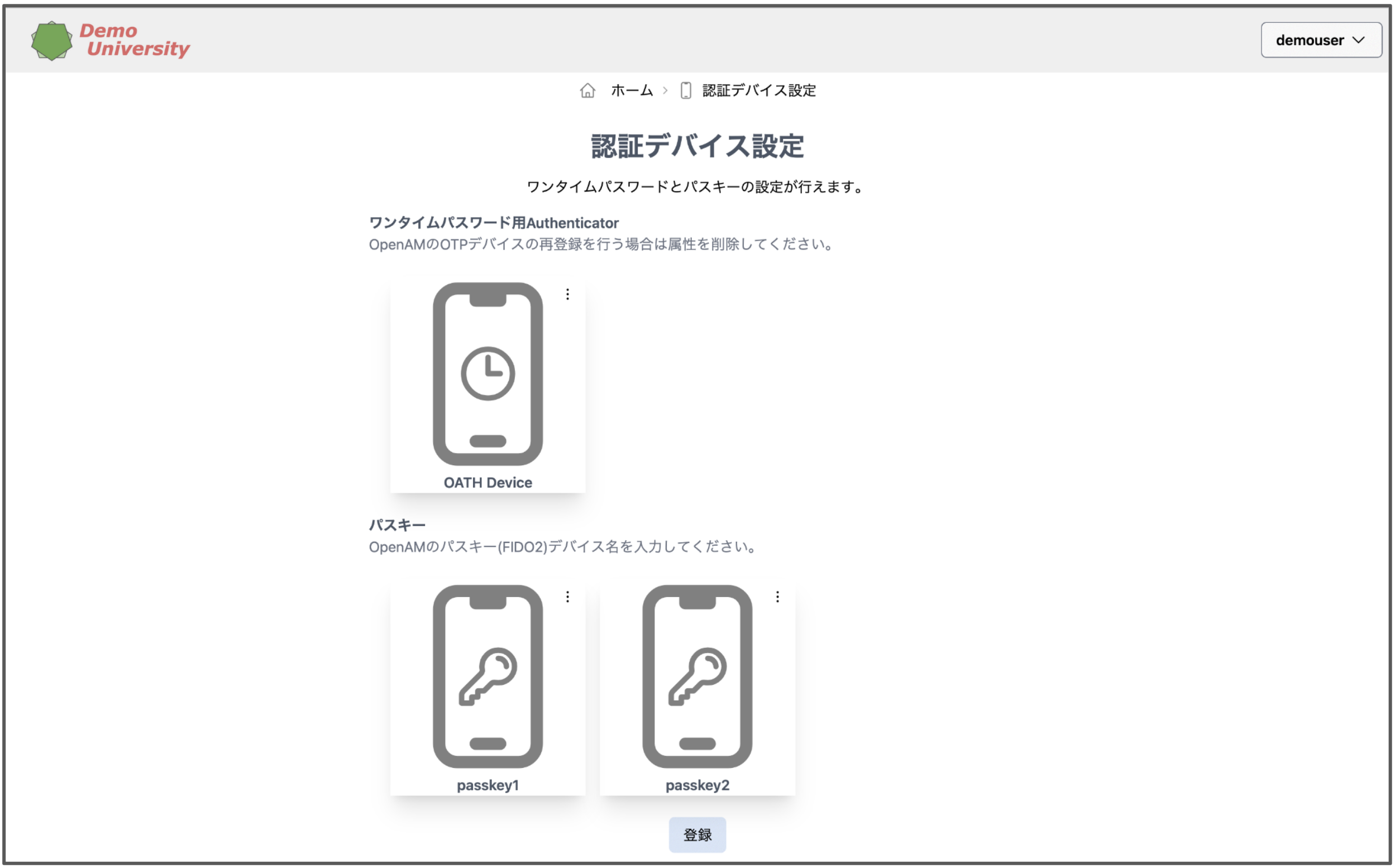 OpenAM と合わせて導入することで、既存の社内システムの ID 管理方法を変更せずにクラウドサービスへのシングルサインオンと ID 連携を実現します。 また、ユーザープロファイル画面にて OpenAM で利用している OTP デバイスや Passkey 情報の確認・削除などを行えます。